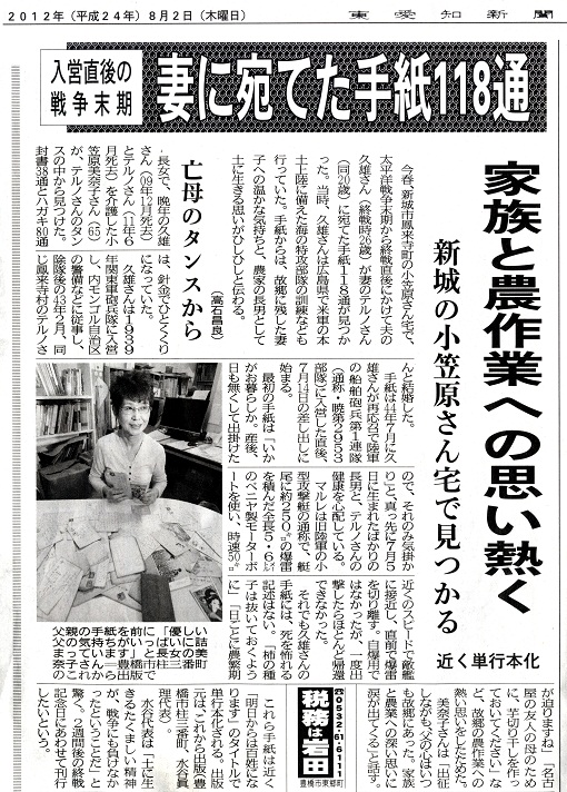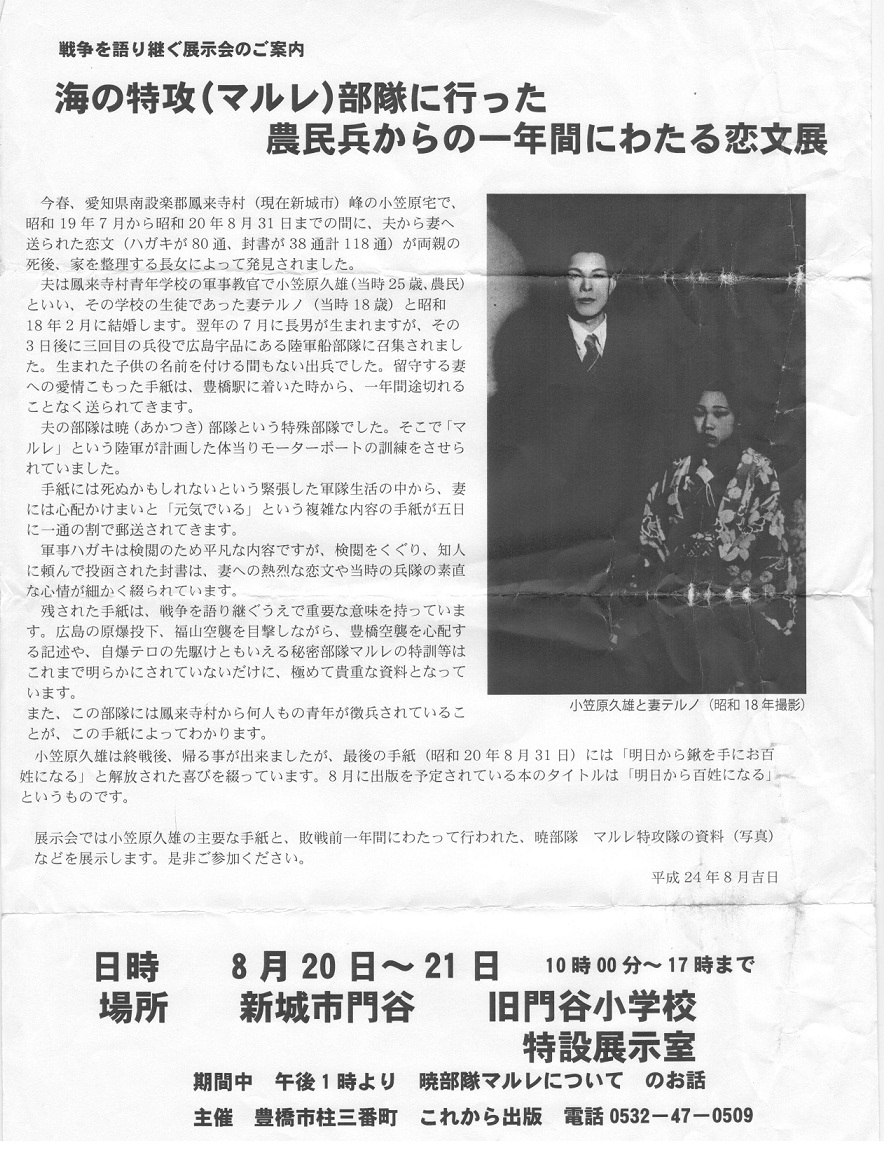 海の特攻(マルレ)部隊から生還した小笠原久雄さんの手紙集
