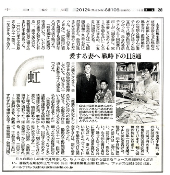 初日の模様が、中日新聞に掲載(2012 8/21)されたので、